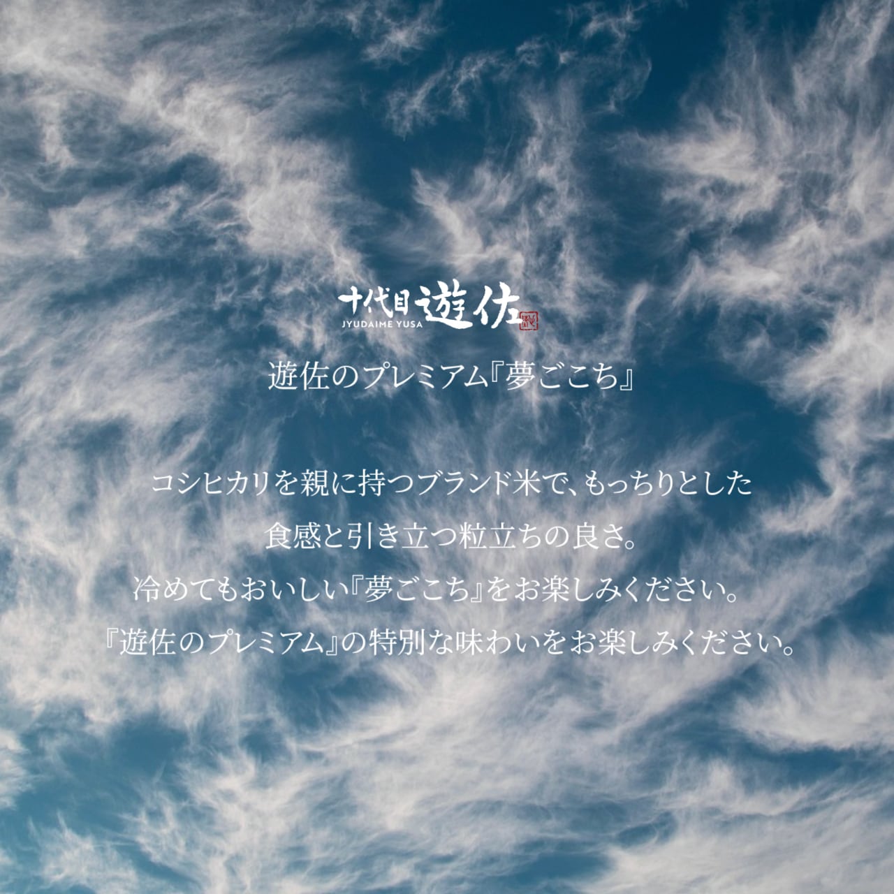 コシヒカリを親に持つブランド米で、もっちりとした食感と引き立つ粒立ちの良さ。冷めてもおいしい『夢ごこち』をお楽しみください。